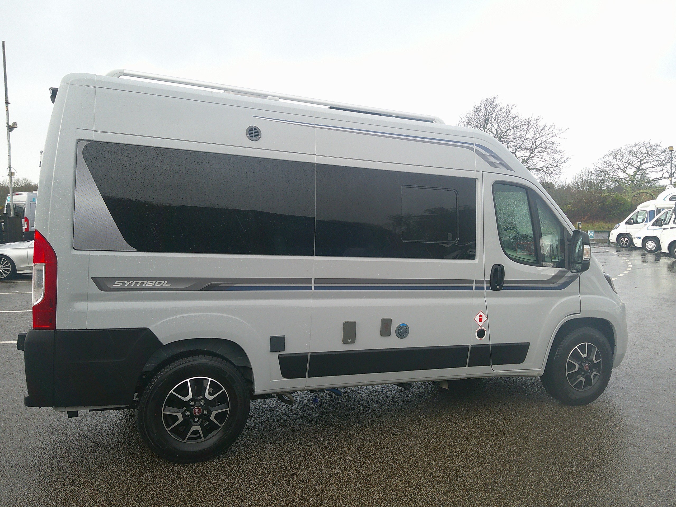 This 2 berth Auto-sleeper Symbol is based on the 2.2 MultijetIII 35 Panel Van 5dr Diesel Auto L2 H2 Euro 6 (s/s) (140 ps). The layout consists of swivel cab seats, bench seat, forward facing seat with a seatbelt, side kitchen, wardrobe and kitchen, the seating offers 2x single beds or a double. The spec consists of heating, oven/grill, 3 burner hob, fridge, microwave, control panel, LPG tank, TV aerial, Avtex mobile internet with simcard, awning, solar panel, roof rails, external 12volt socket, BBQ point, leisure battery, electric step, Fiat media system to include Apple carplay, Android auto, rev camera, cruise control, multi function steering wheel, face lift Fiat interior, alloy wheels, grade 3 insulation. -