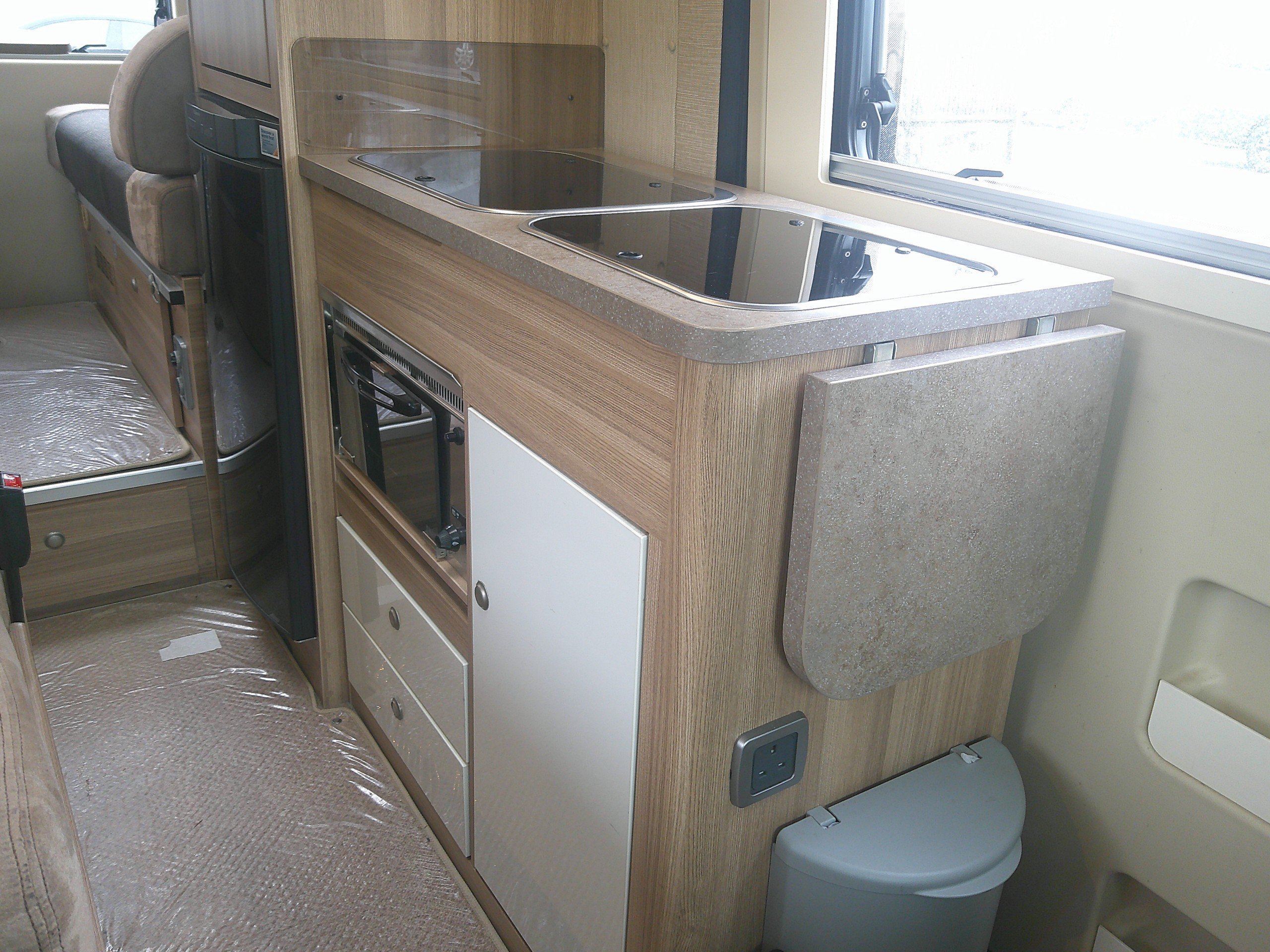 This 3 berth Autocruise Accent is based on the 130BHp Peugeot chassis. The layout consists of a rear lounge which offers a double bed across, kitchen, bathroom, half dinette with 2 seatbelts, swivel cab seats. The spec consists of heating, hot water, grill, 2 burner hob, microwave, 3 way fridge, water tanks, lights, leisure battery, TV aerial, manual entrance step, rear sensors, cab A/C, cruise control. -