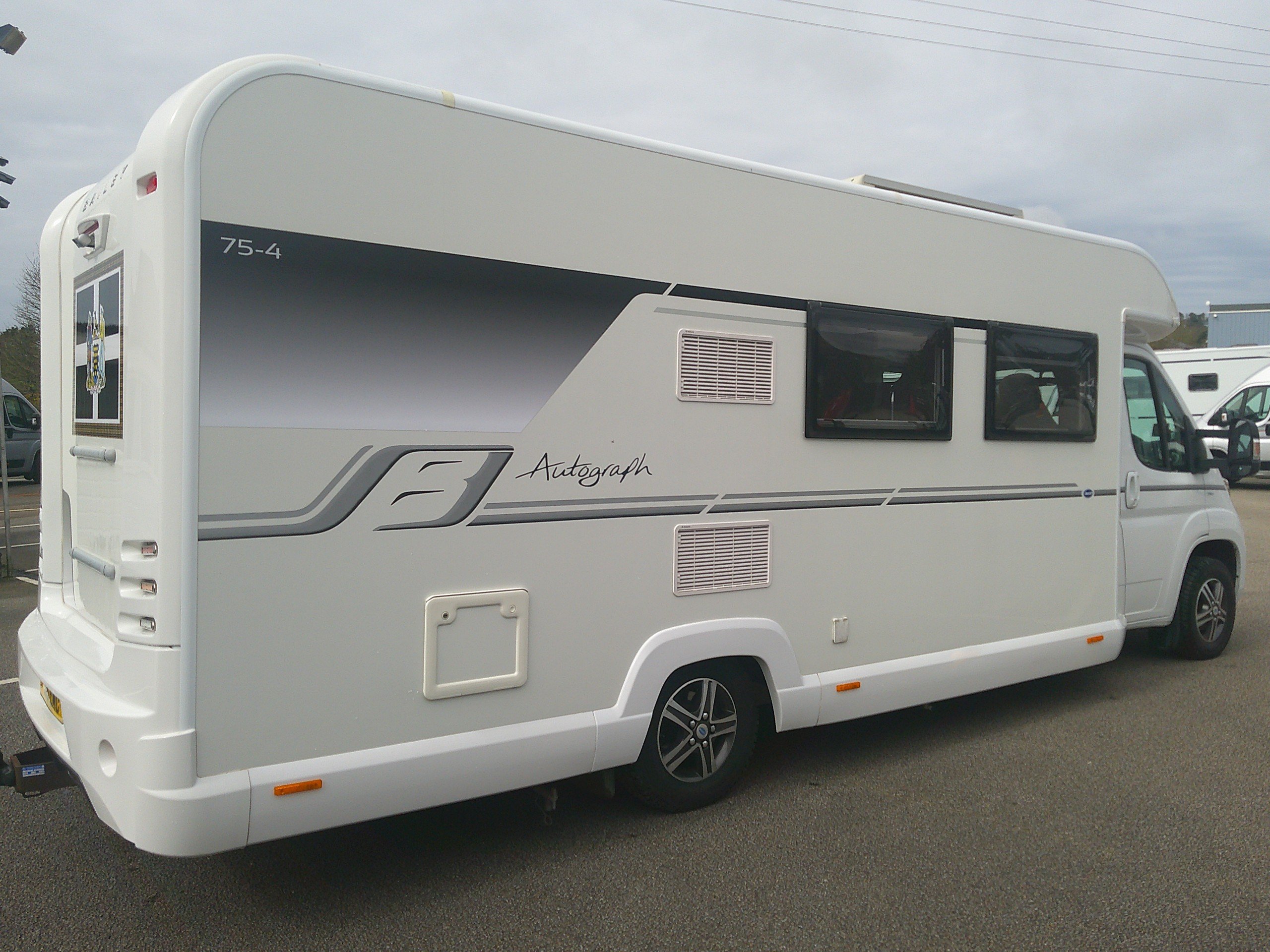 This stunning Bailey Approach Autograph 75-4 is based on the 160BHP Peugeot chassis. The layout consists of a French bed, corner bathroom with a separate shower, side kitchen, front seating with 2 rear seatbelts, swivel cab seats. The spec consists of an Alde system for the heating and hot water, full oven, 3 way fridge, microwave, water tanks, control panel, solar, leisure battery, rev camera, tow bar, alloys, TV aerial, awning. -