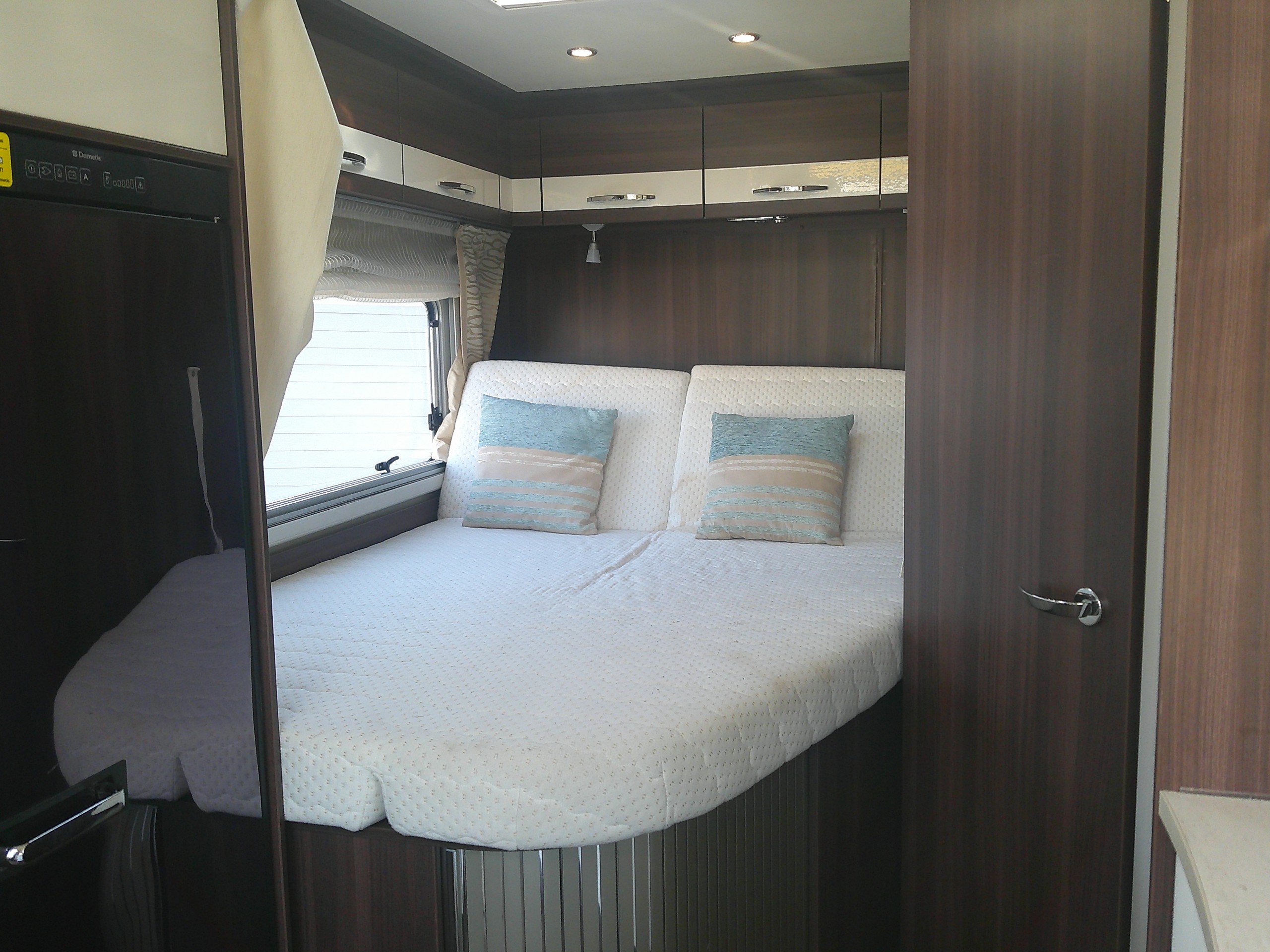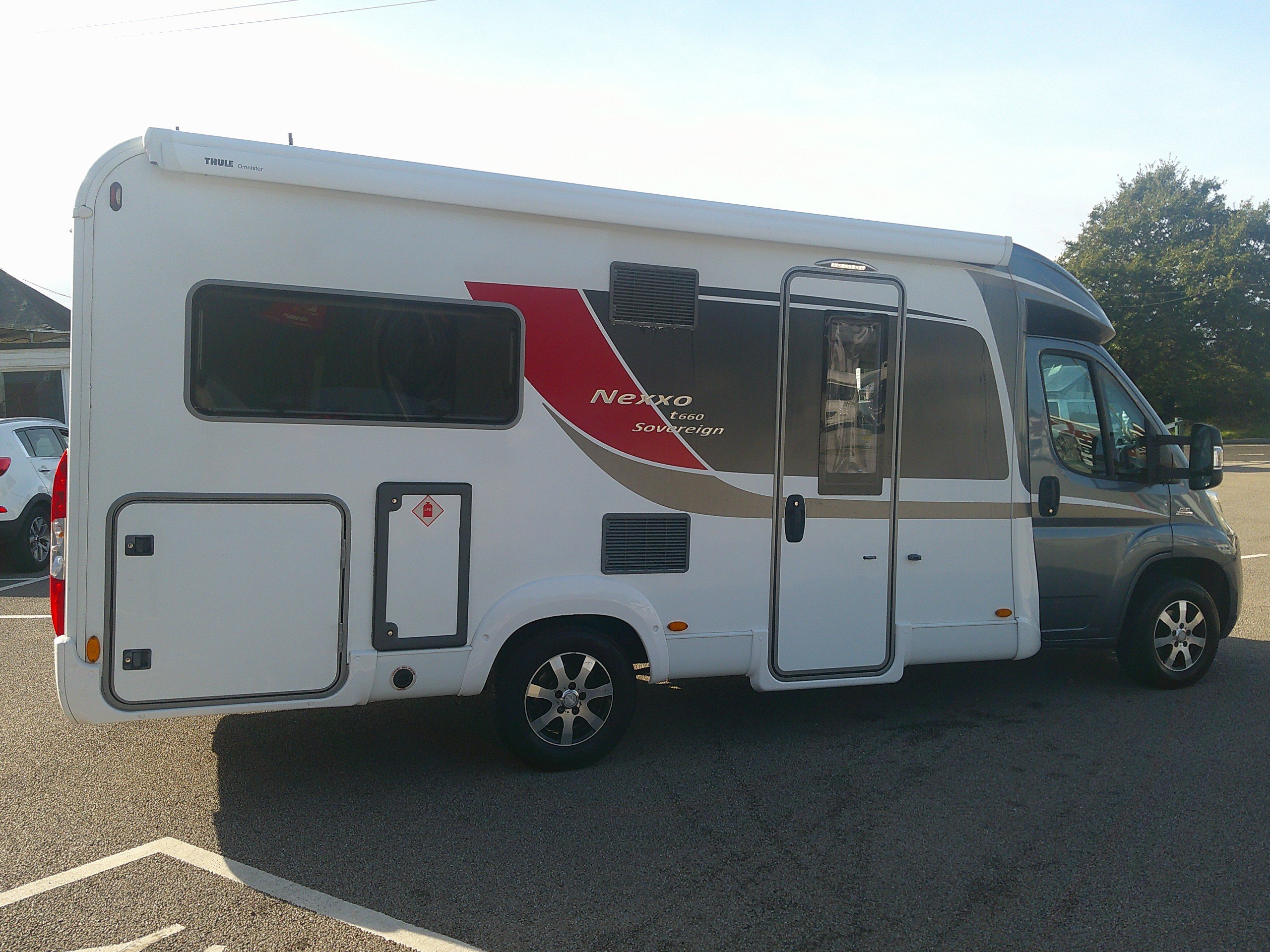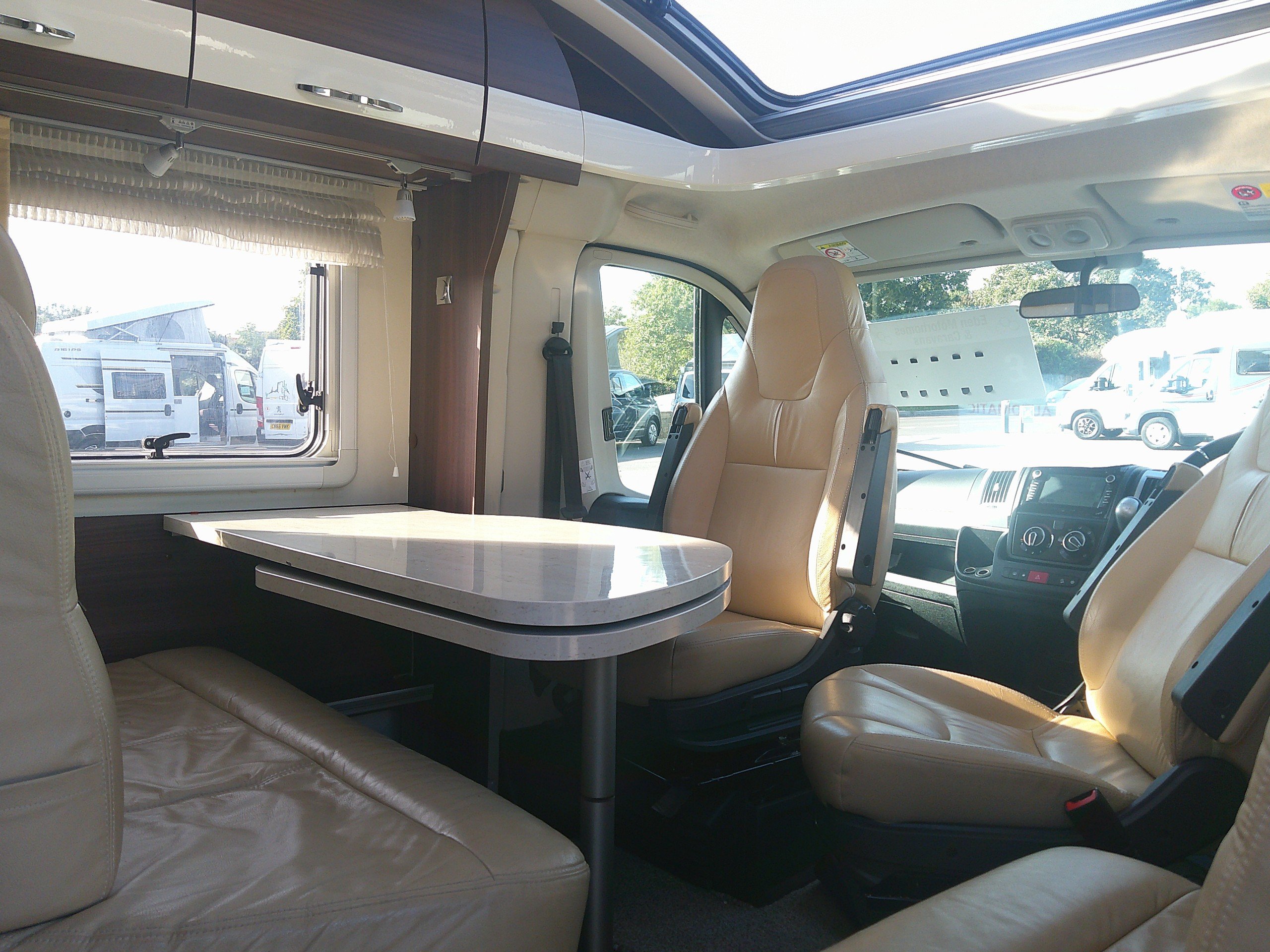 This 4 berth Automatic Burstner T660 Sovereign is based on the 150BHP Fiat chassis. The layout consists of a French bed, corner bathroom, central kitchen, seating area with 2 seatbelts, swivel cab seats. The spec consists of heating, hot water, 3 burner hob, Dometic combi oven/grill, 3 way fridge freezer, 2x leisure batteries, solar panel, TV aerial, awning, control panel, sat nav/rev camera, cruise control, cab A/C, water tanks. -