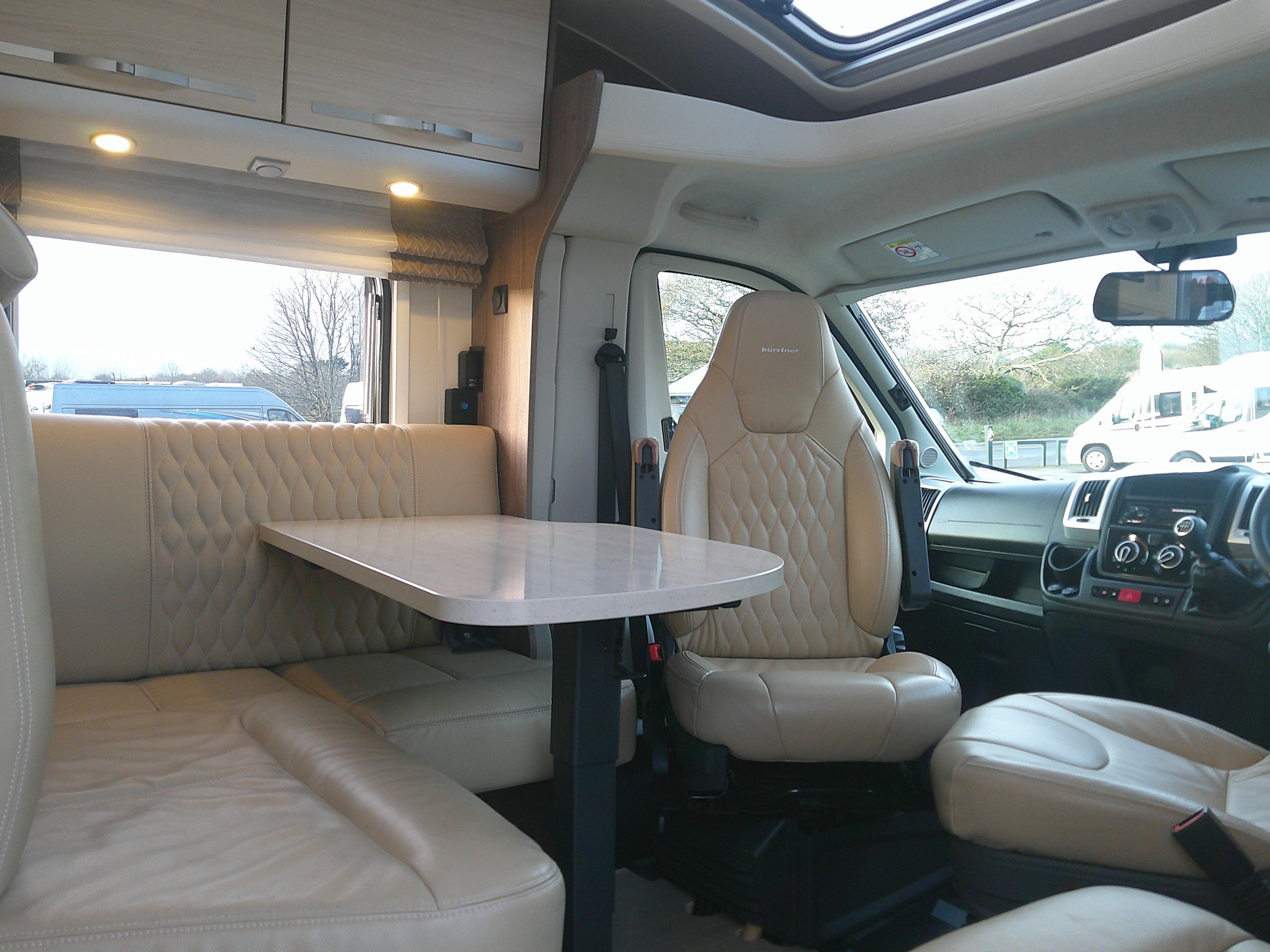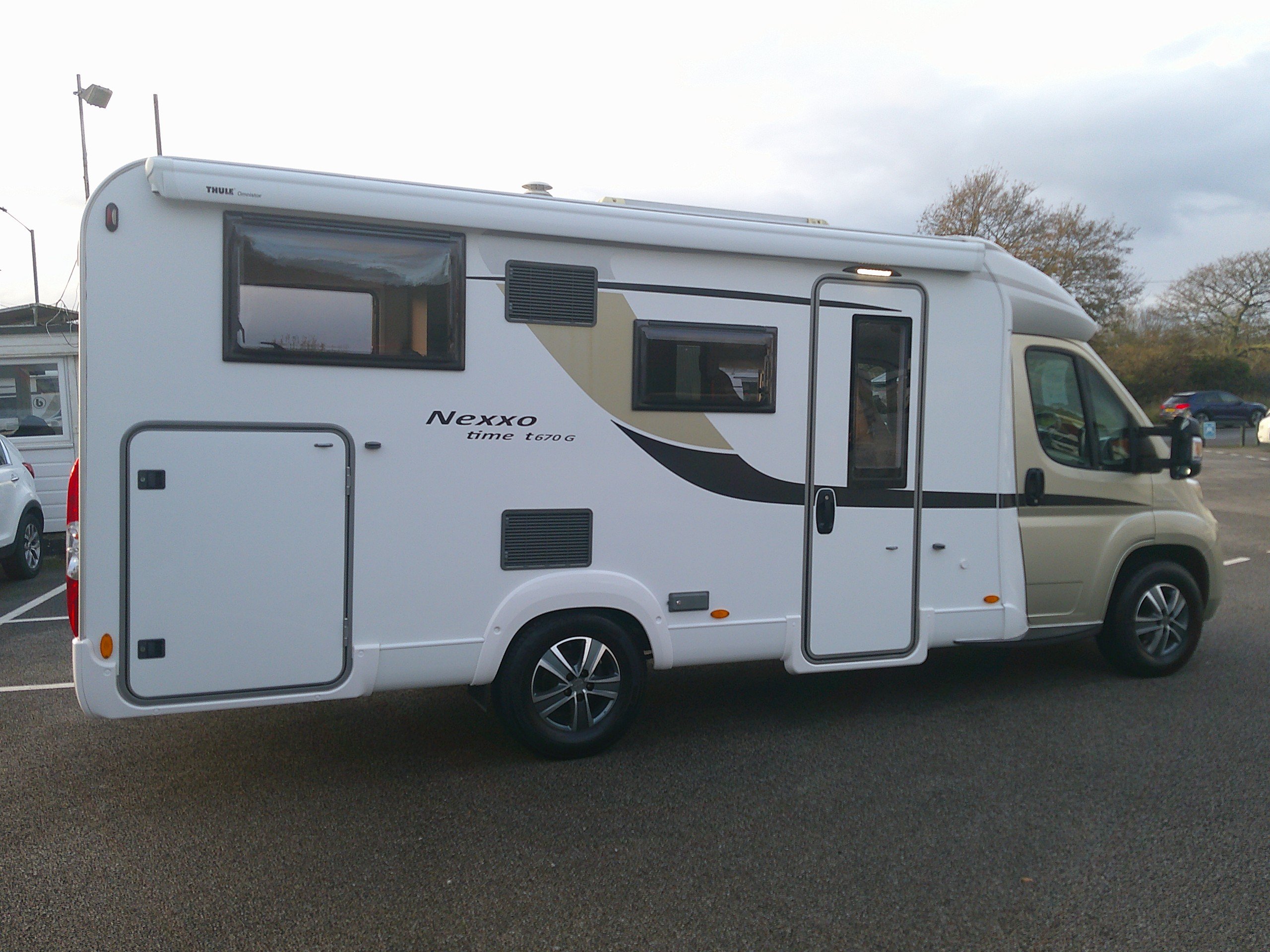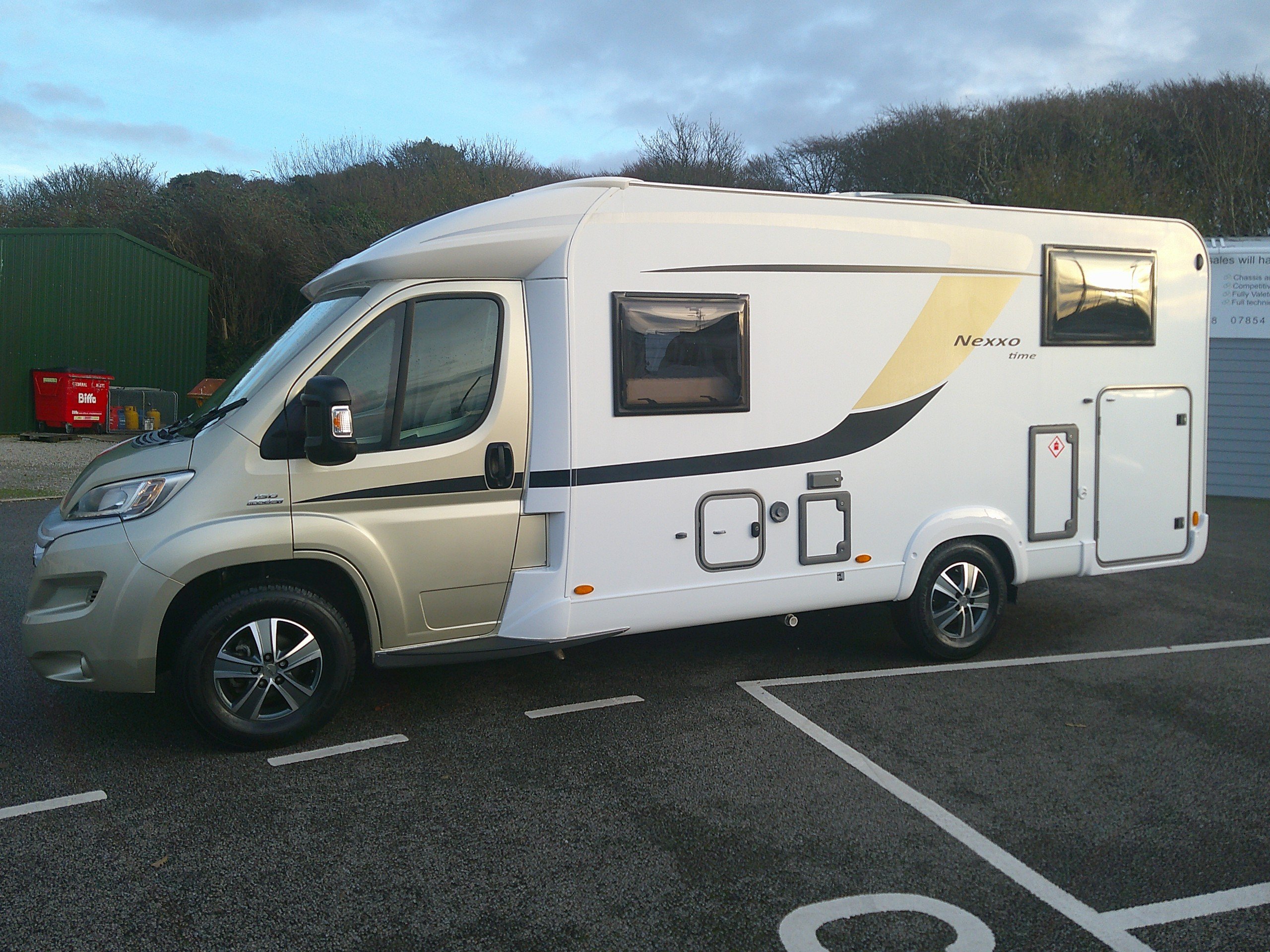 This immaculate 3 berth Burstner Nexxo Time T670G is based on the 150BHP Fiat chassis. The layout consists of a very good size garage with a double bed above, bathroom with a swingwall shower unit, kitchen, half dinette with 2 rear seat belts, swivel cab seats. The spec consists of heating, hot water, 3 burner hob, oven, 3 way fridge, water tanks, blinds and flyscreens, 2x leisure batteries, solar panel, awing, rev camera, alloys, cruise control, cab A/C. -