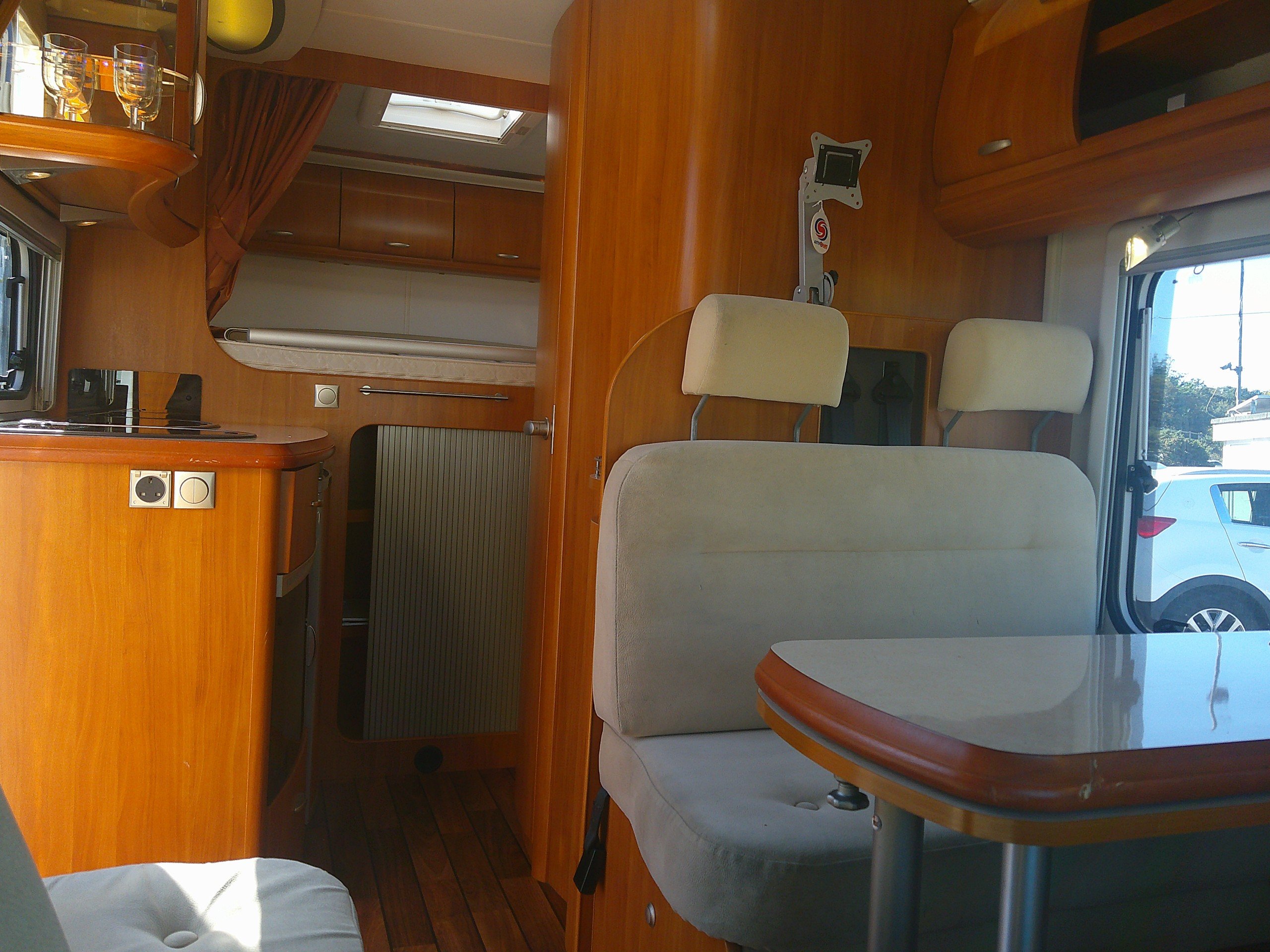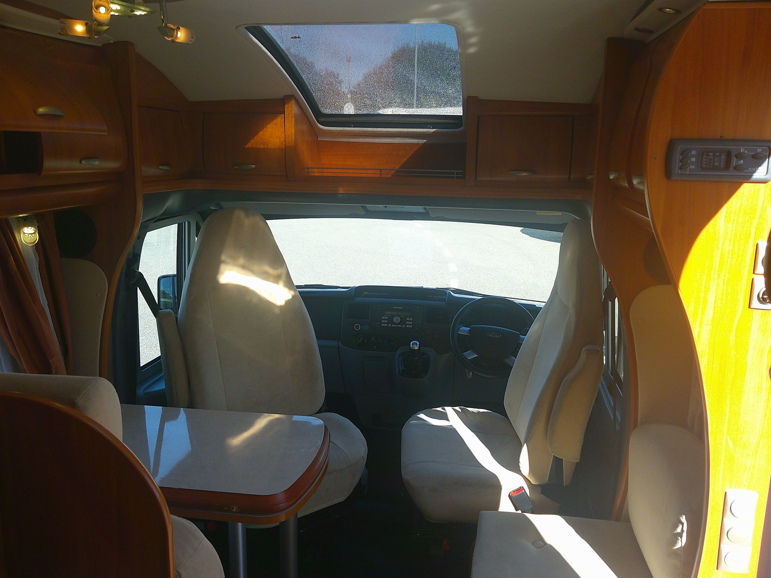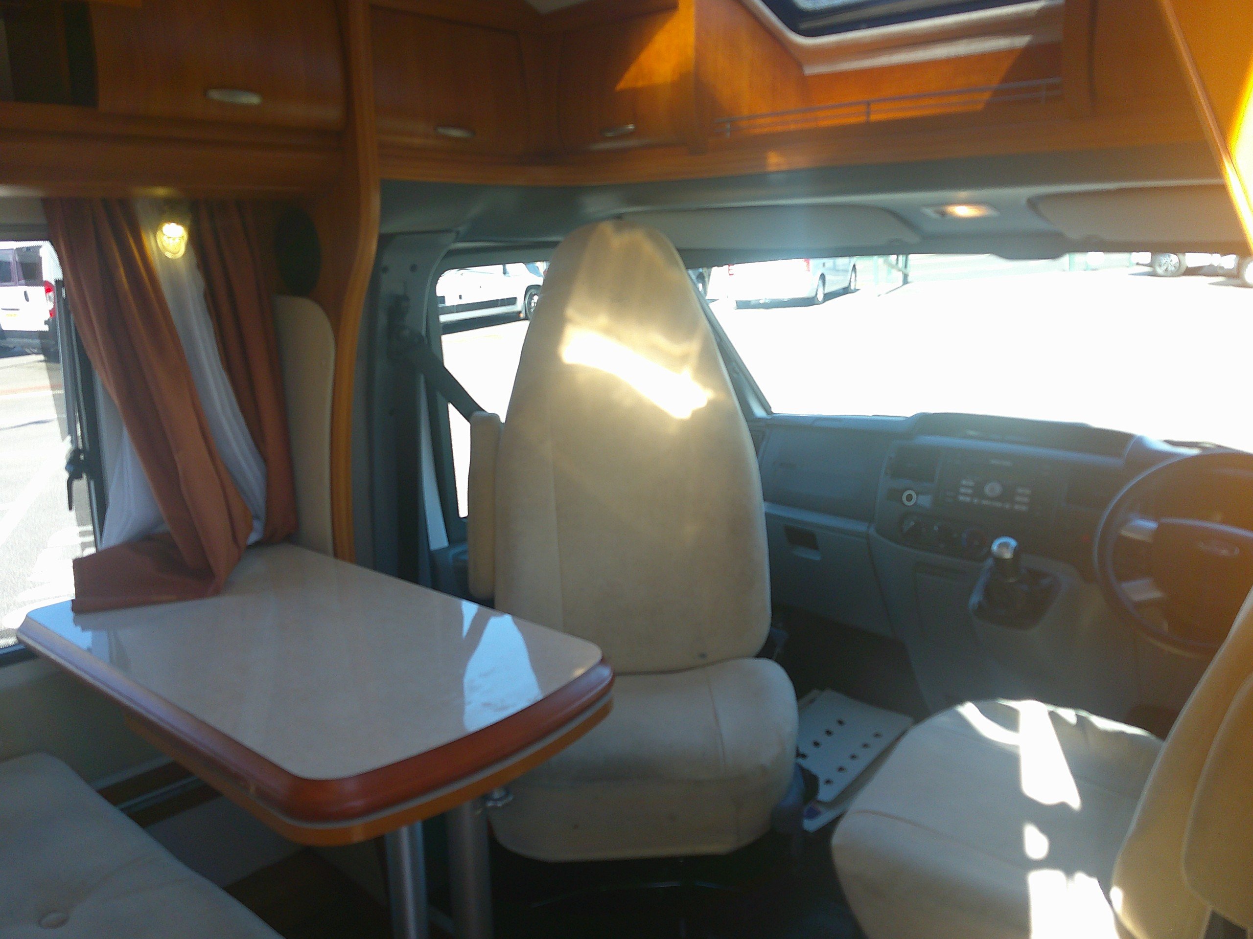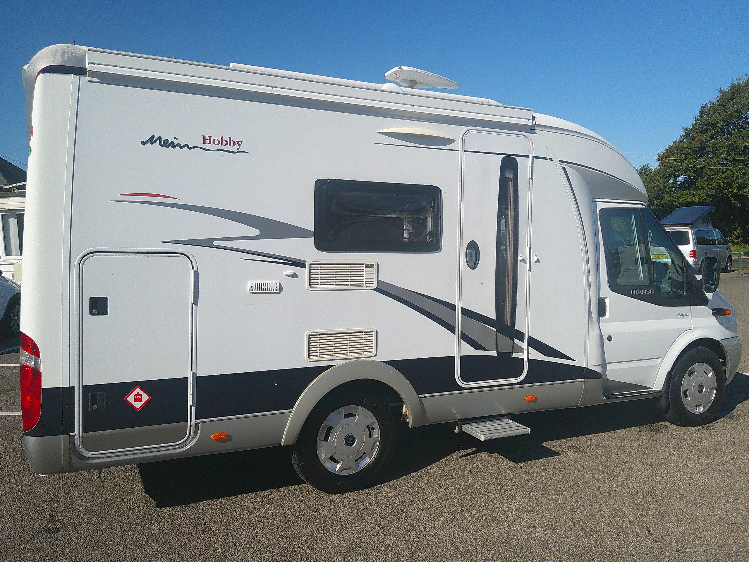 This 3 berth Hobby T600 is based on the Ford chassis with a 5 speed manual gear box. The layout consists of a fixed garage bed, bathroom with a separate shower, side kitchen, half dinette with 2 forward facing seat belts and swivel cab seats. The spec consists of heating, hot water, hob, oven and grill, 3 way fridge, water tanks, double glazing with blinds and flyscreens, TV aerial, Cab A/C, cruise control. -