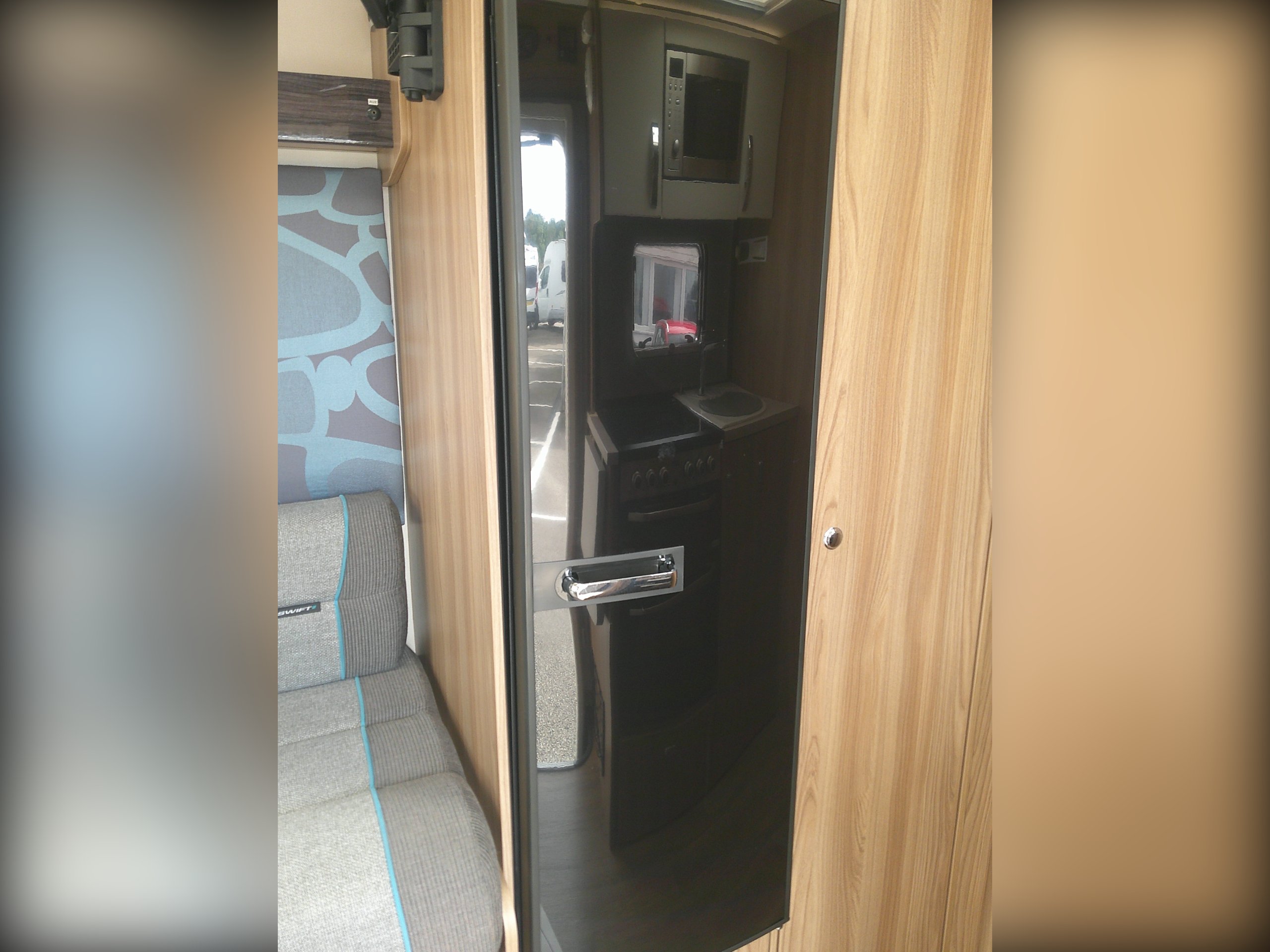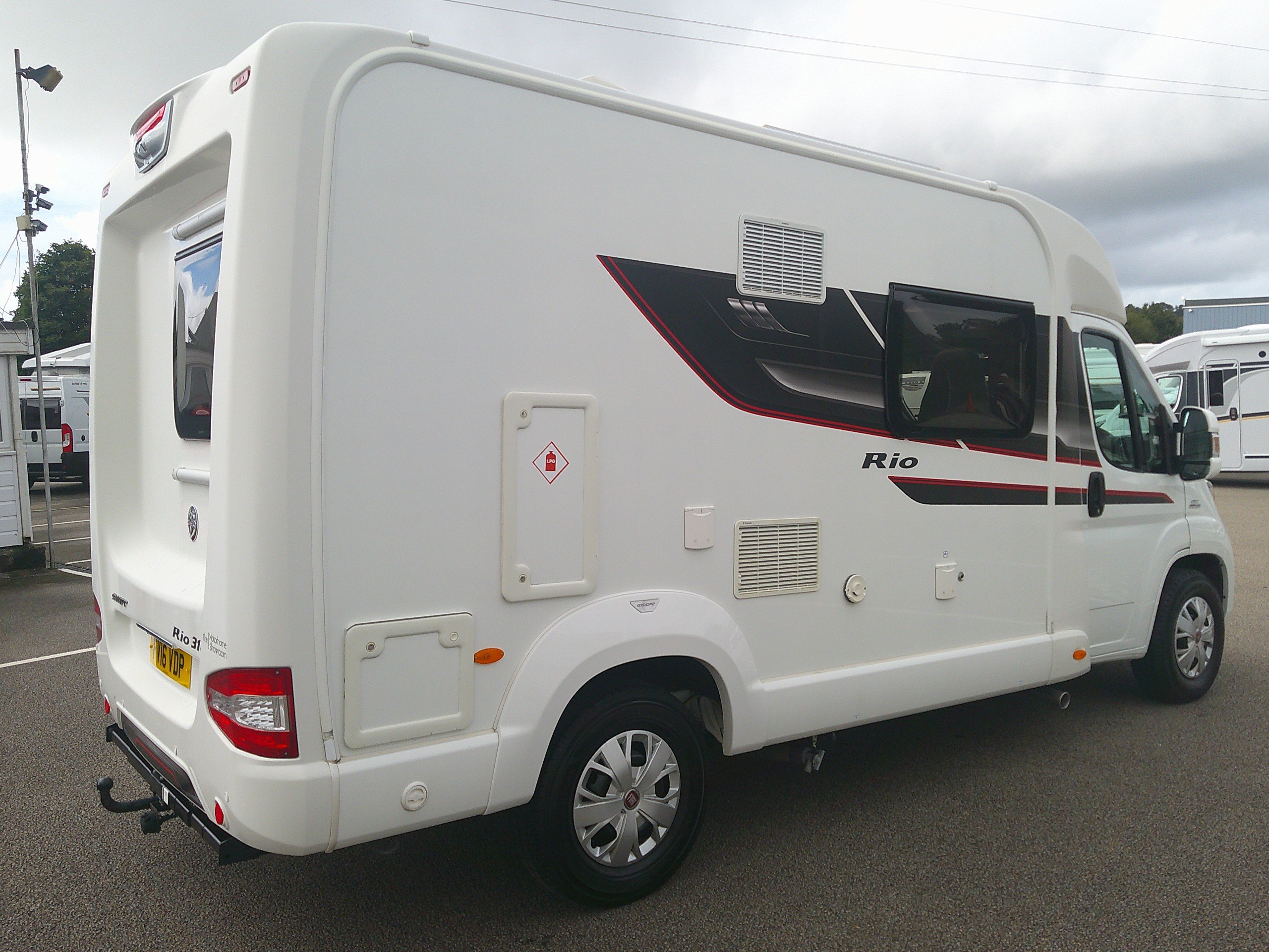 This 2 berth Swift Rio 310 is based on the 130BHP Fiat chassis. The layout consists of an end bathroom, kitchen, front lounge, swivel cab seats. The spec consists of heating, hot water, oven/hob and grill, 3 way fridge, blinds and flyscreens, solar panels, TV aerial, rev camera, BBQ point, leisure battery. -