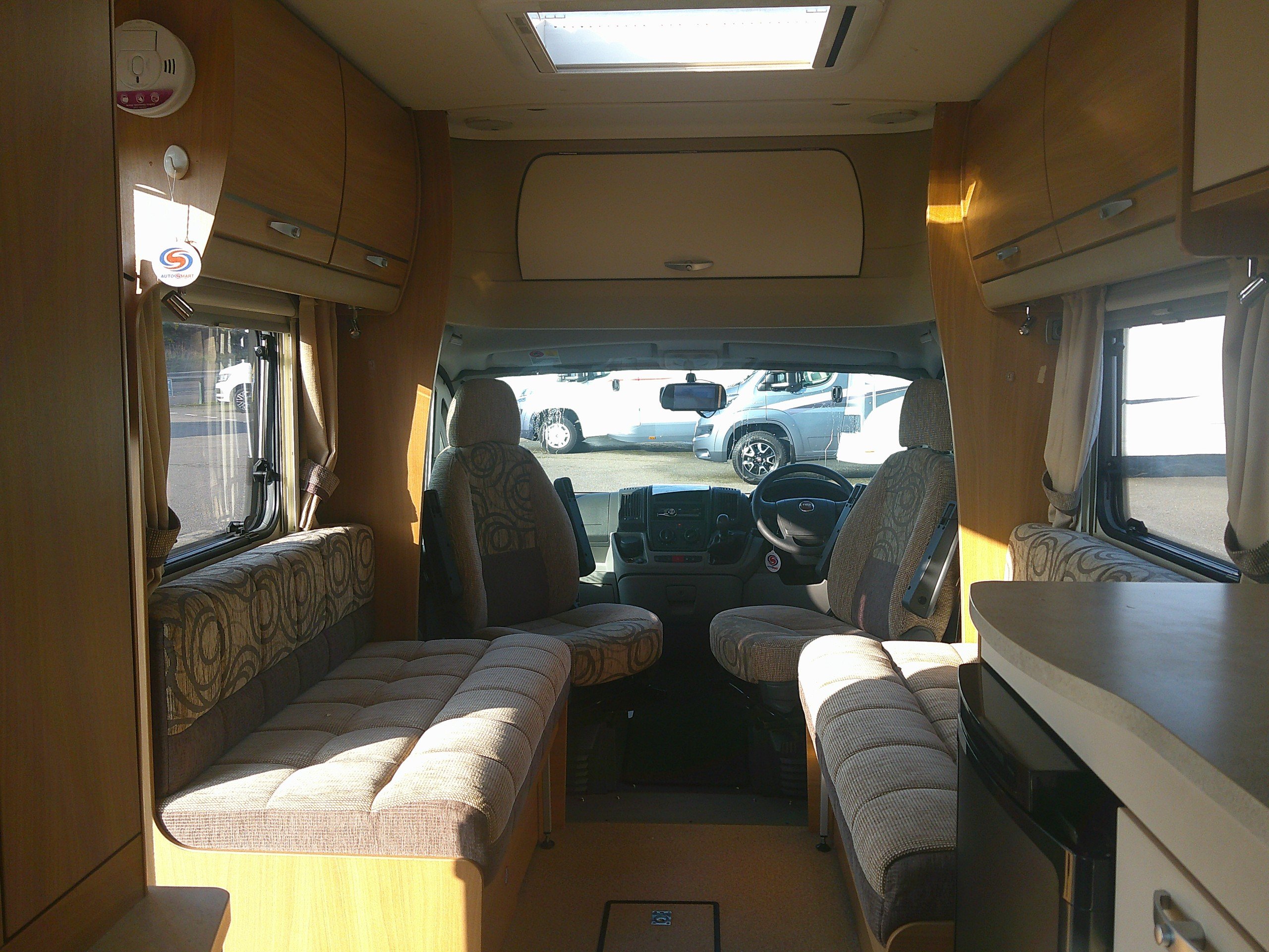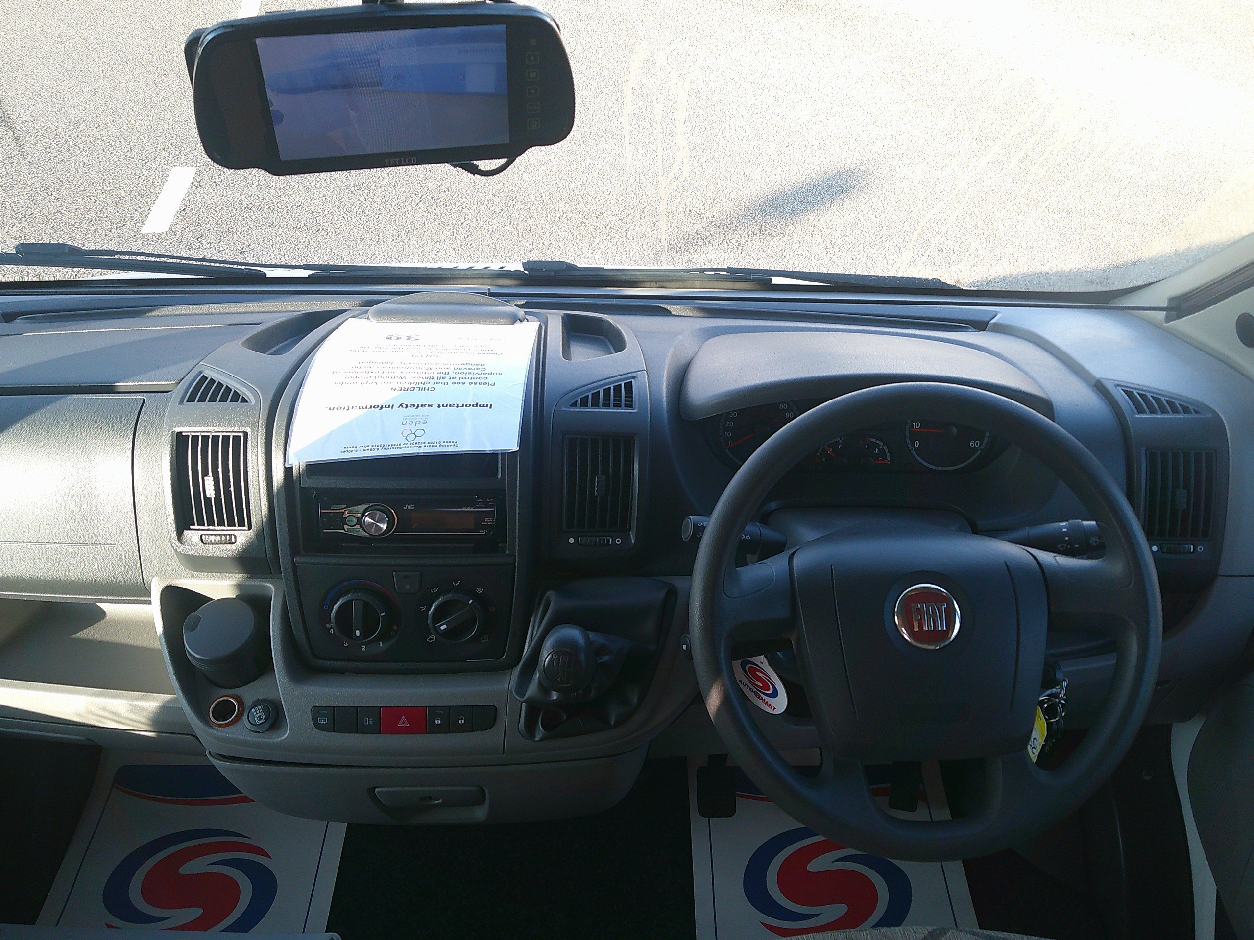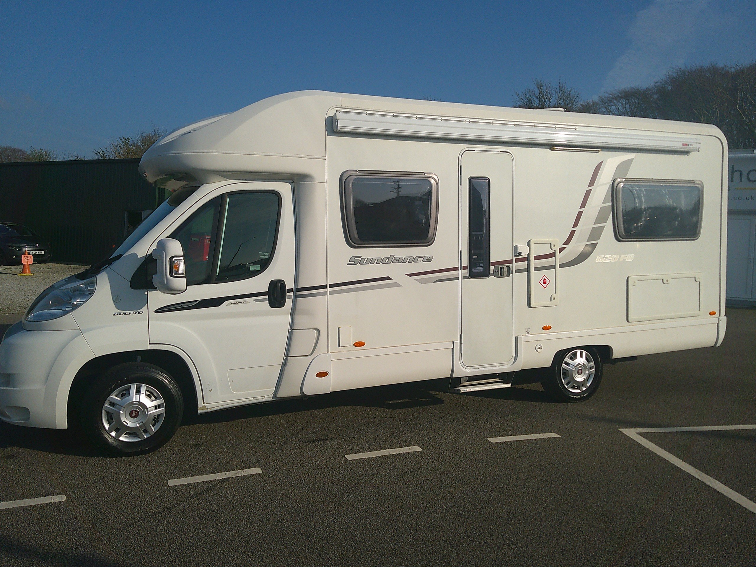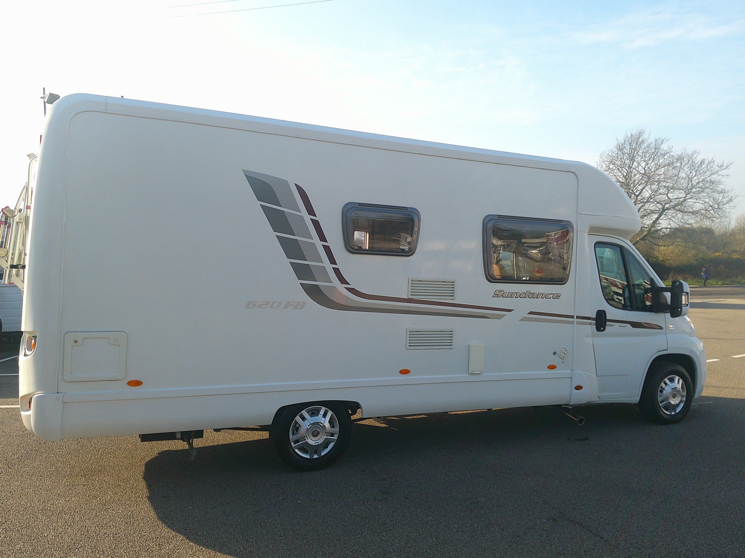 This 4 berth Swift Sundance 620FB is base don the Fiat 2.3td chassis which produces 130BHP. The layout consists of a French bed, corner bathroom, side kitchen, bench seats, swivel cab seats. The spec consists of heating, hot water, oven/hob and grill, microwave, 3 way fridge, water tanks, blinds and flyscreens, entrance step, control panel, solar, awning, TV aerial, cab A/C. -