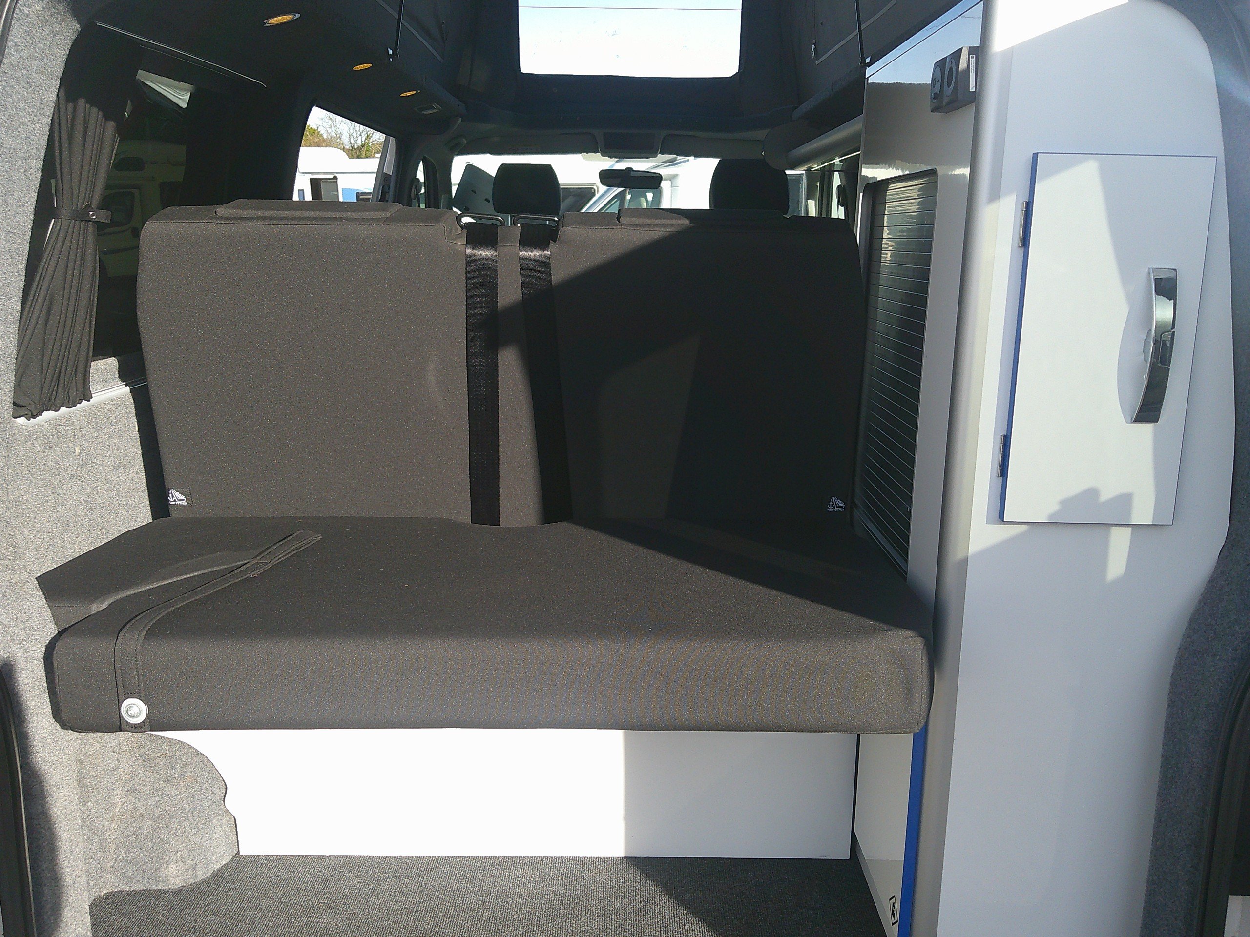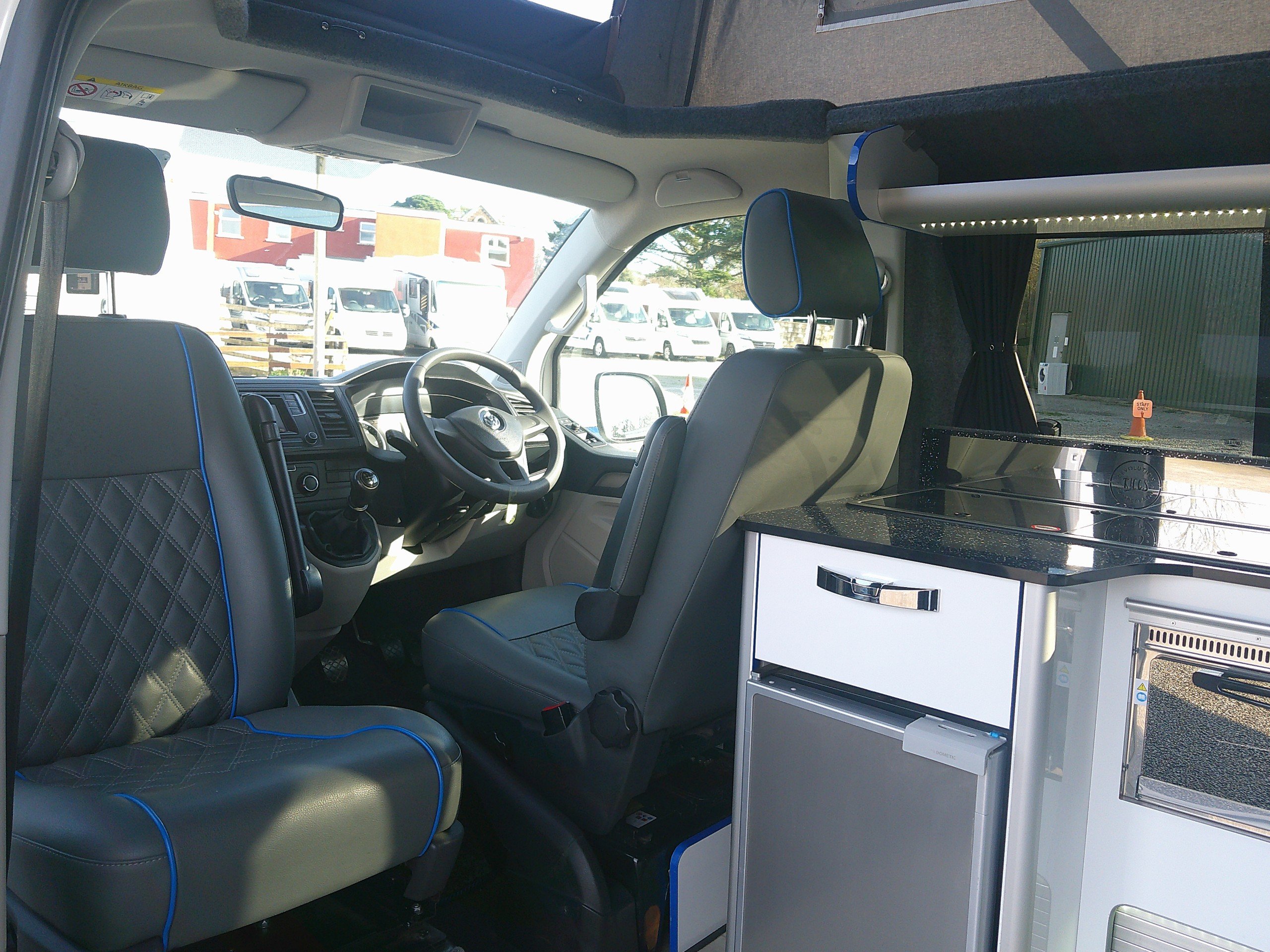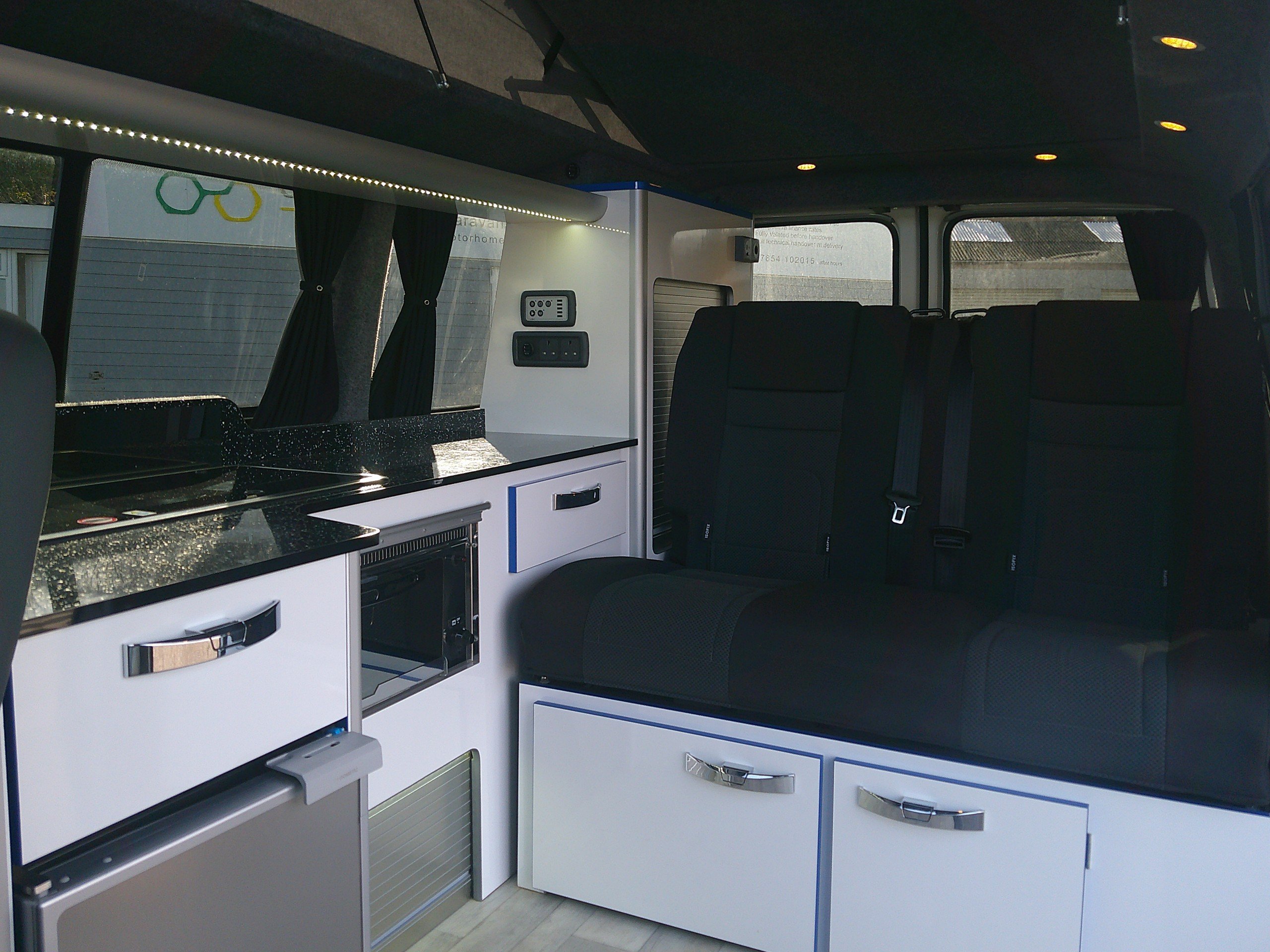 This 4 berth Revolution Ricos Campervan conversion is based on the 2.0 TDI T28 BlueMotion Tech Trendline Panel Van 5dr Diesel Manual FWD SWB Euro 6 (s/s) (102 ps). The layout consists of an elevating roof with a bed, side kitchen, Rock N Roll RIB bed, swivel passenger seat. The spec consists of an inboard water tank, 2 burner hob, grill, 12 volt fridge, sink, control panel, leisure battery, awning, lights, rear sensors, alloys, cab A/C, cruise control. -